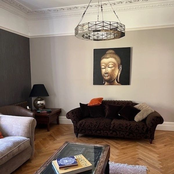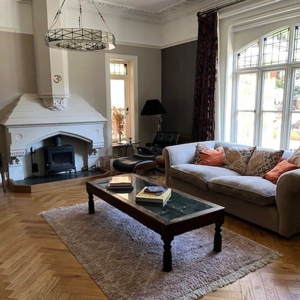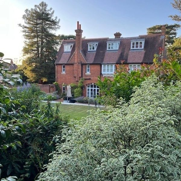 It is a mansion built in 1876, tucked away in the Victorian residential area of Tonbridge, and it boasts high ceilings, elegantly decorated rooms, a wonderful breathwork/yoga studio and an inviting garden with a large lawn flanked by pathways and mature shrubbery.